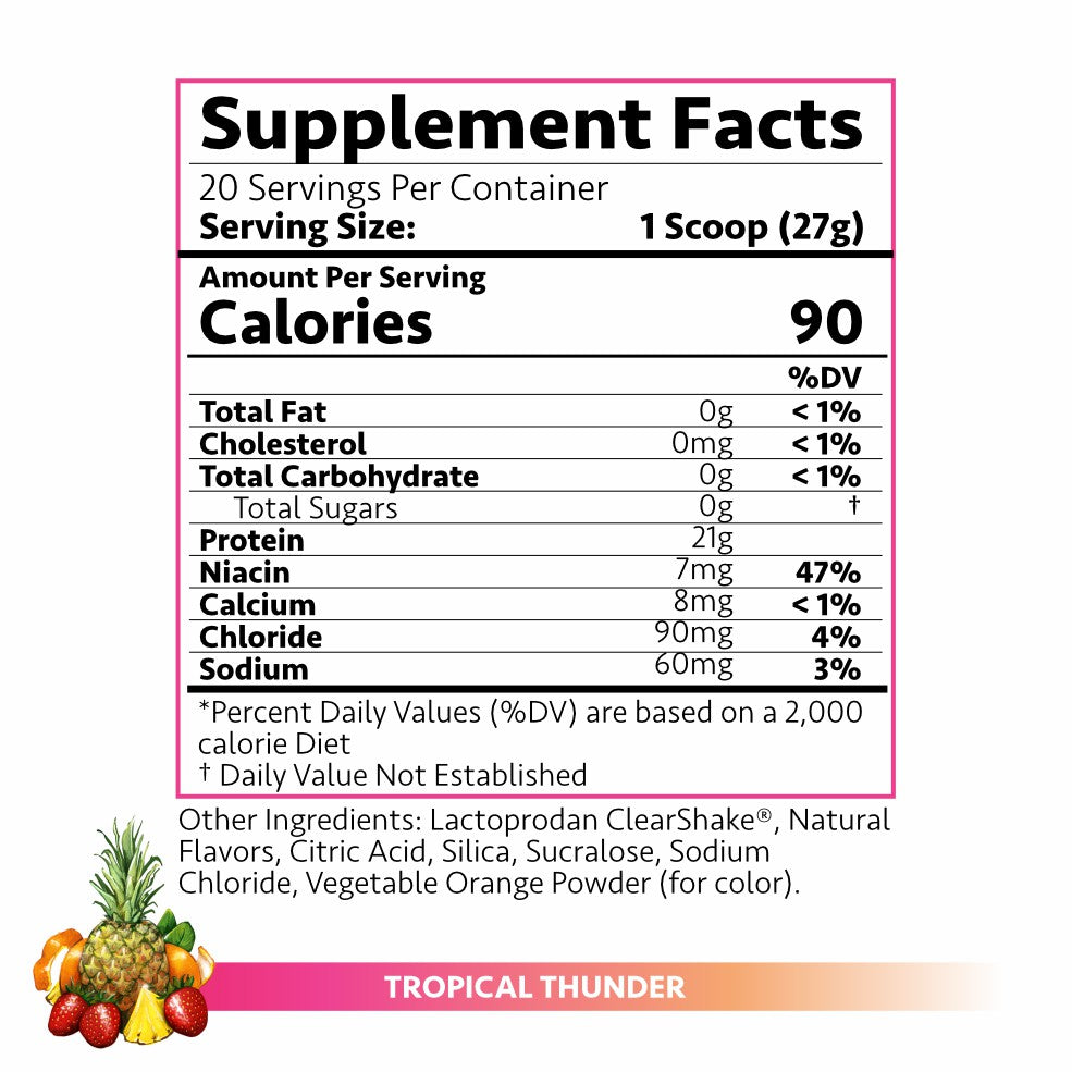 Experience a refreshing twist on protein with Titan Nutrition Clear Whey Isolate Tropical Thunder! Packed with 22g of high-quality protein per scoop, this ultra-light and juicy protein drink is powered by Lactoprodan Clear Shake®, delivering rapid absorption without the heavy texture of traditional protein powders.