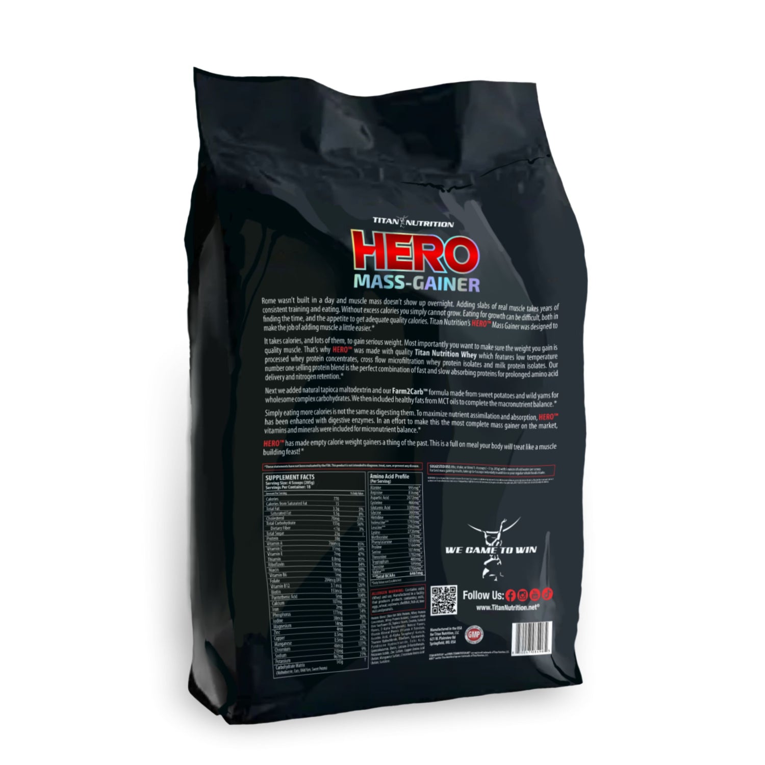 Rome wasn’t built in a day and muscle mass doesn’t show up overnight. Adding muscle takes years of consistent training and eating. Without excess calories, you simply cannot grow. Not all weight gainers are created equally. You want to make sure the weight you gain is quality muscle. That's why Titan’s Hero Mass Gainer is meticulously formatted with high-quality ingredients and none of the BS to make gains just a little easier.