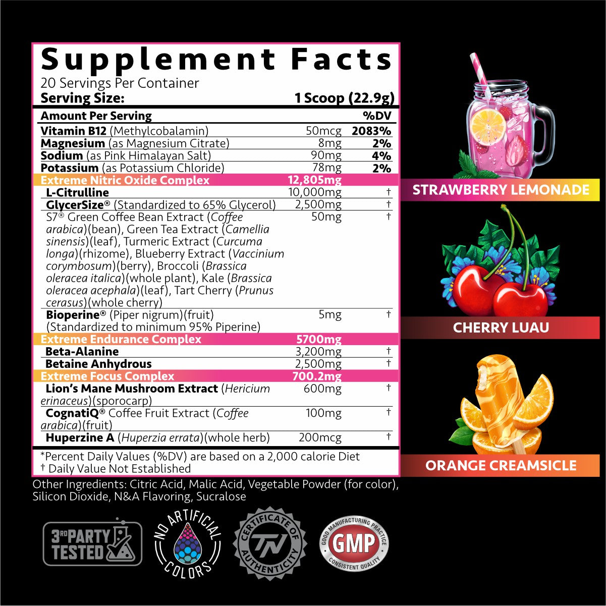 With beta-alanine, l-citrulline, glycerol and electrolytes, Pump Unrivaled helps fight fatigue, allowing you to push through longer, more intense workouts. -
