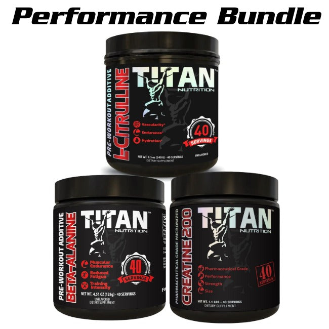 Together, Beta Alanine, Creatine, and L-Citrulline form a powerful performance bundle that can help you to achieve your fitness goals faster and more effectively than ever before. Whether you're a serious athlete or just looking to get in shape, the Titan Nutrition performance bundle is the perfect choice for anyone who wants to take their fitness to the next level. So why wait? Try the Titan Nutrition performance bundle today and see the difference for yourself!